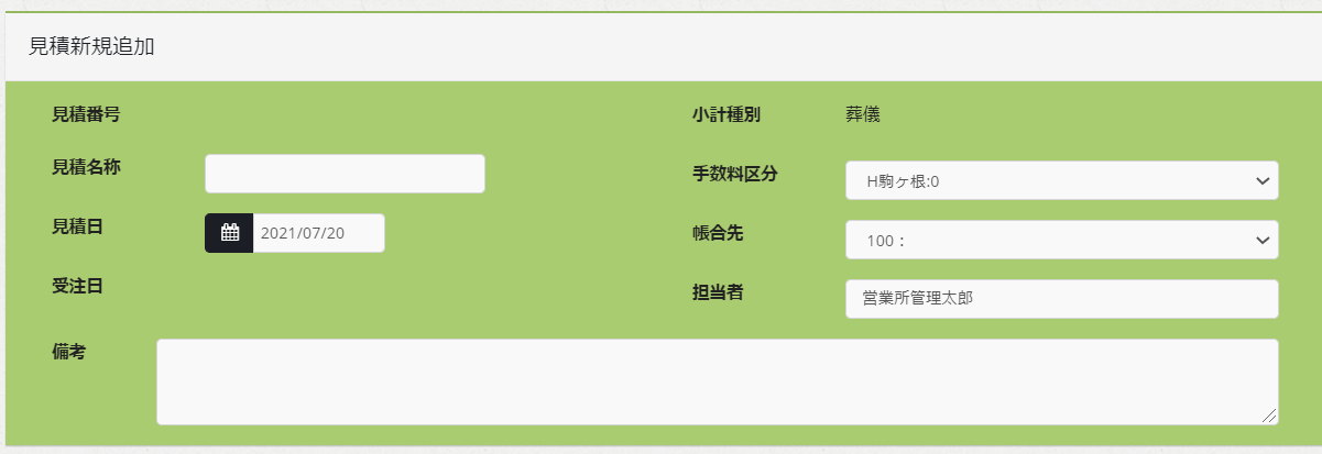 見積追加ボタンをクリックすると、新規見積を作成することができます。