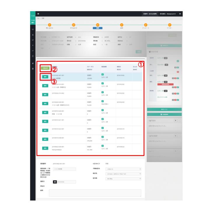 また、カーソルを合わせると、見積書、納品、手配のボタンが出現します
