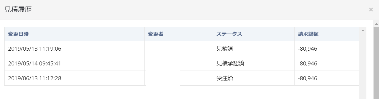 見積りに対する変更履歴を表示します