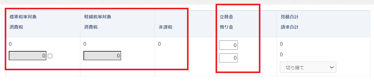 立替金を入力すると、その分が請求合計に加算され、預り金を入力すると、請求合計から減算されます。