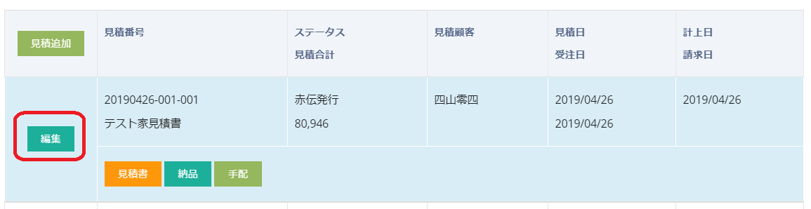 編集ボタンをクリックすると、作成済みの見積を編集することができます
