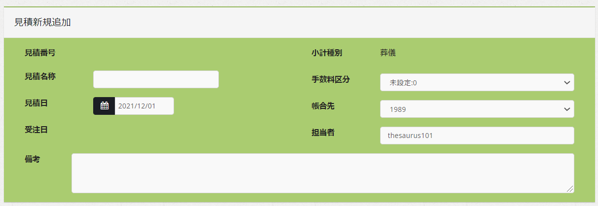 「新規登録」ボタンをクリックすると、見積り情報が作成されます