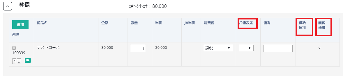 小計種別を選択して追加してください