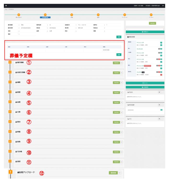 お客様からとのお打ち合わせ内容を記録する画面です。
