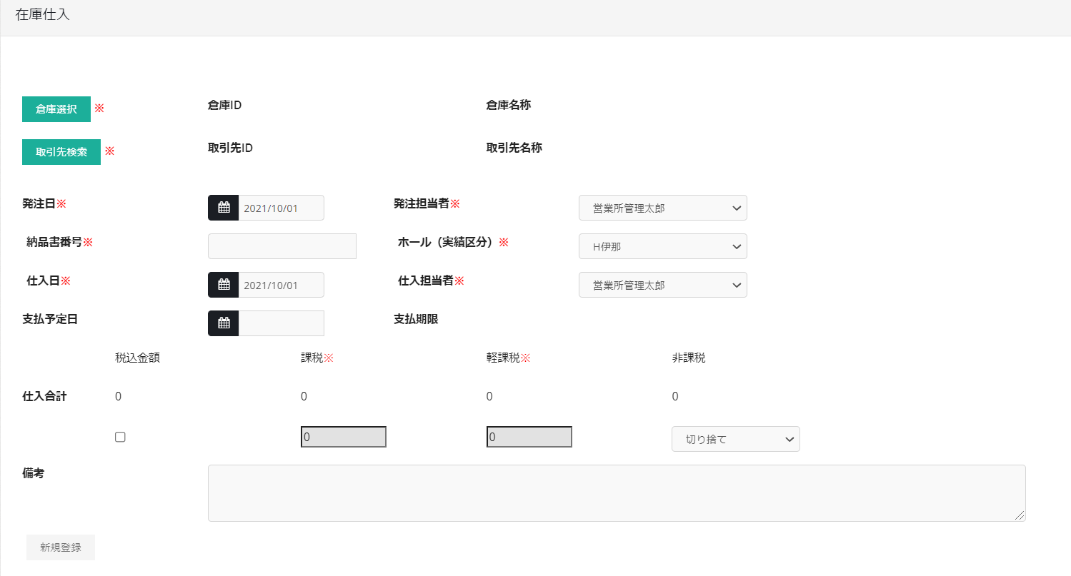 仕入登録に必要な情報を入力します。