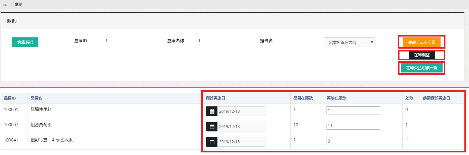 - 棚卸実施日