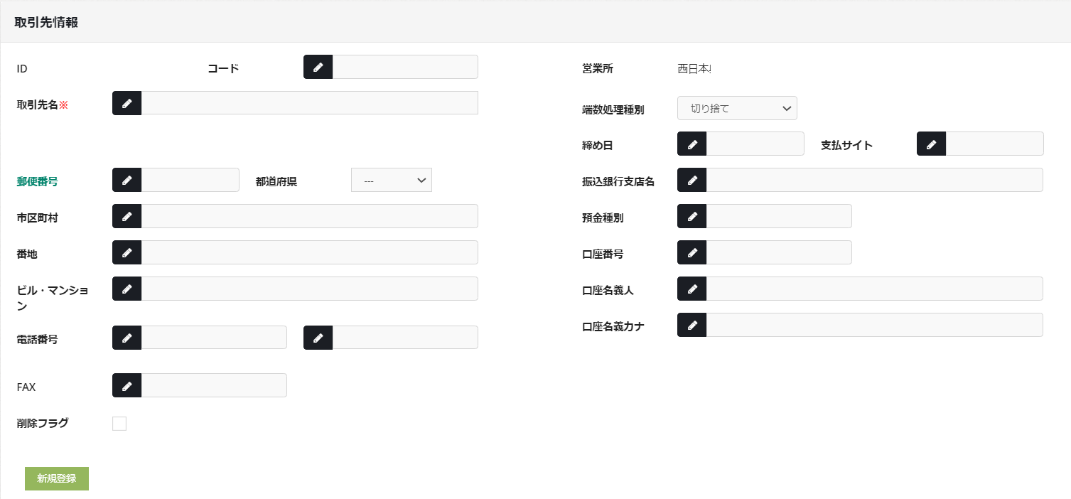 取引先の情報を入力して「新規登録」ボタンをクリックしてください
