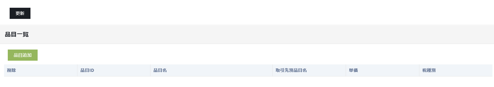 取引先情報を作成すると、作成した取引先に品目を追加することができるようになります