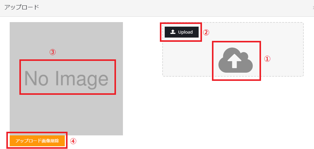 ①雲のアイコンをクリックすると、ご自身のパソコンのエクスプローラーが起動して、アップロードしたい画像を選択することができます