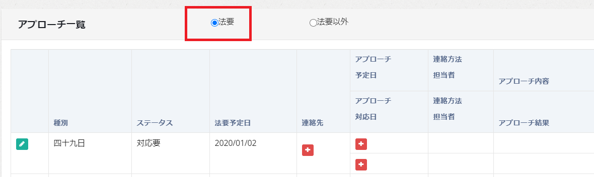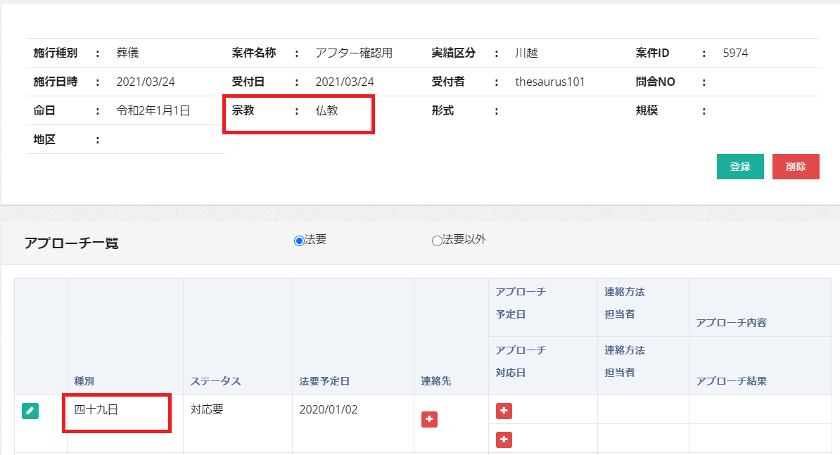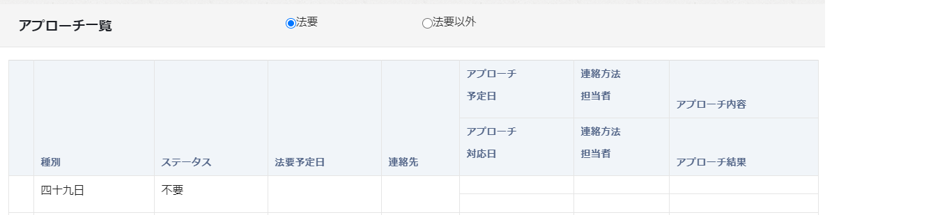 宗教を仏教にした案件のアフター画面に四十九日が表示されます