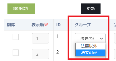 (例:③にチェックを入れて更新すると⑤は削除されます。