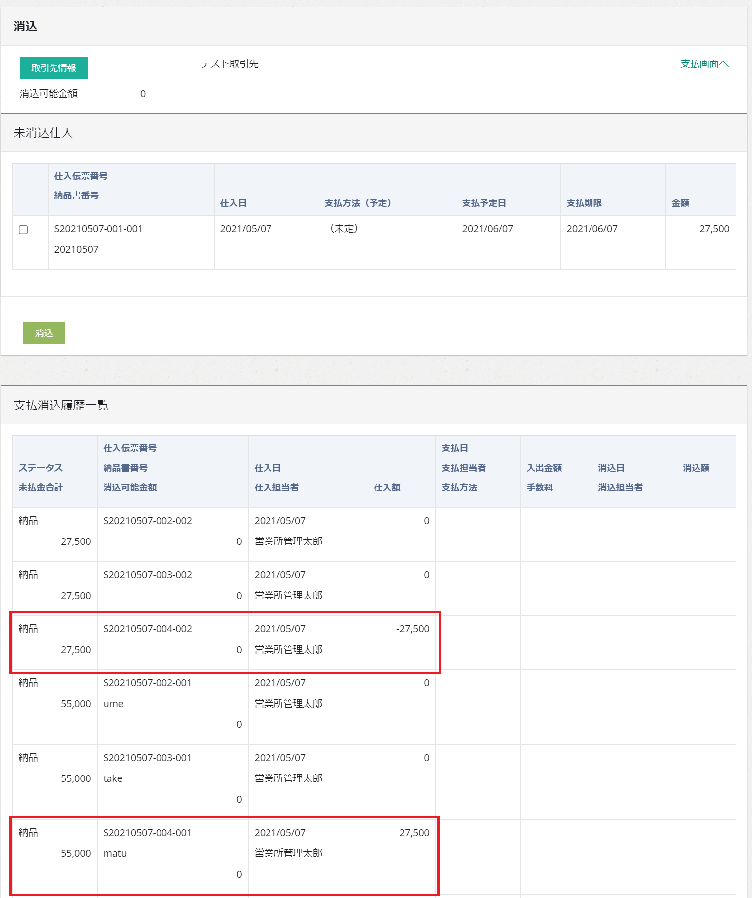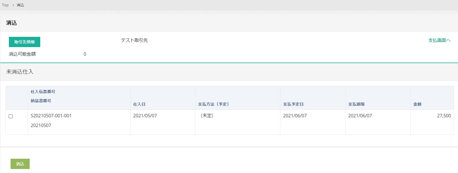 承認されると、消込(支払管理)にレコードが表示され消込が可能になります。