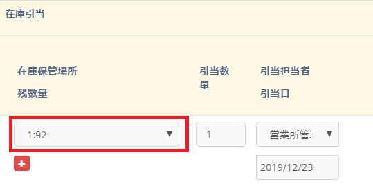 ※複数の倉庫から出庫する場合は、赤い+ボタンをクリックして項目を追加してください