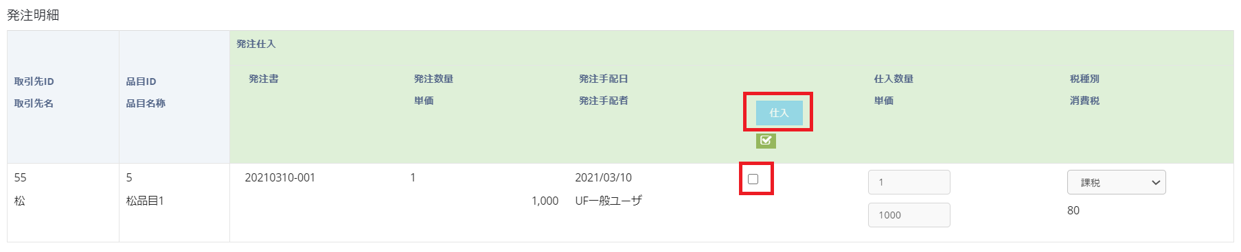仕入処理がされると、仕入に関する情報が表示されるようになります
