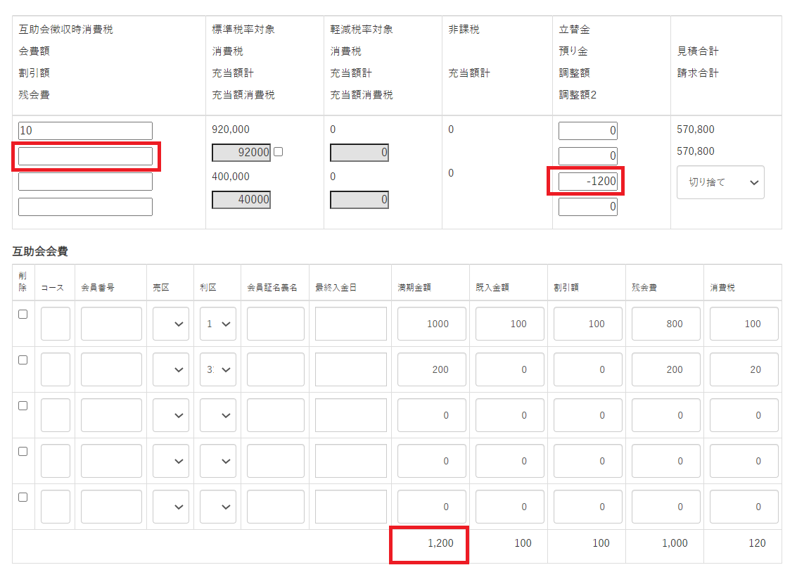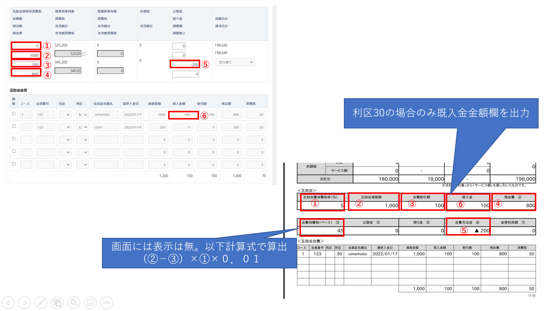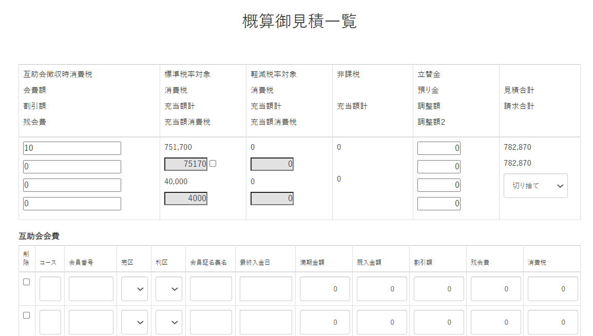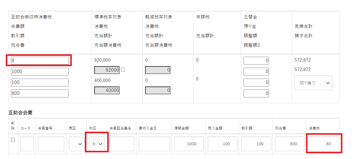 消費税は、利区30の場合は互助会徴収時税率欄に入力された税率で計算され、利区30以外は10%で固定です。