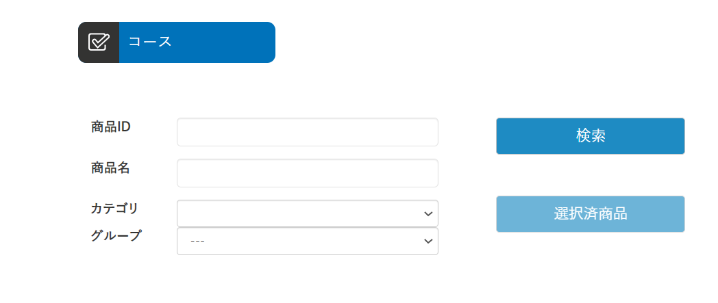 商品ID、商品名、カテゴリ、グループいずれも未指定の状態で検索することはできません。いずれかの項目で絞り込みを行ってください。