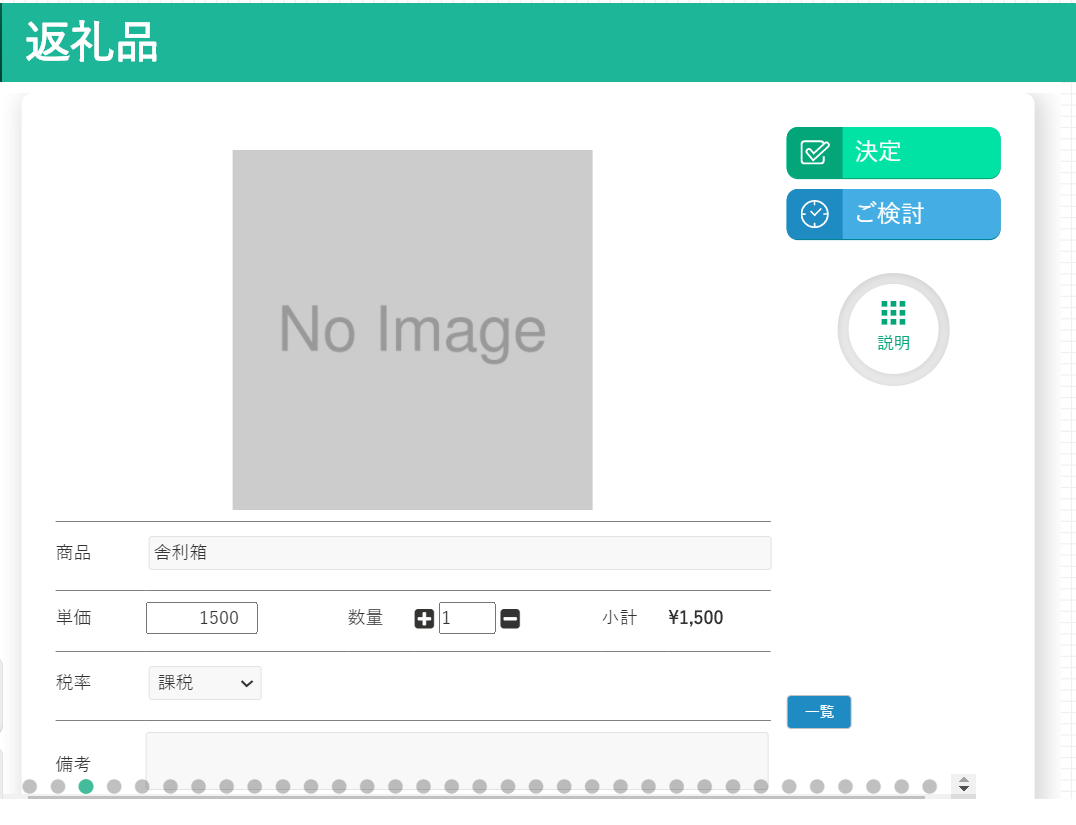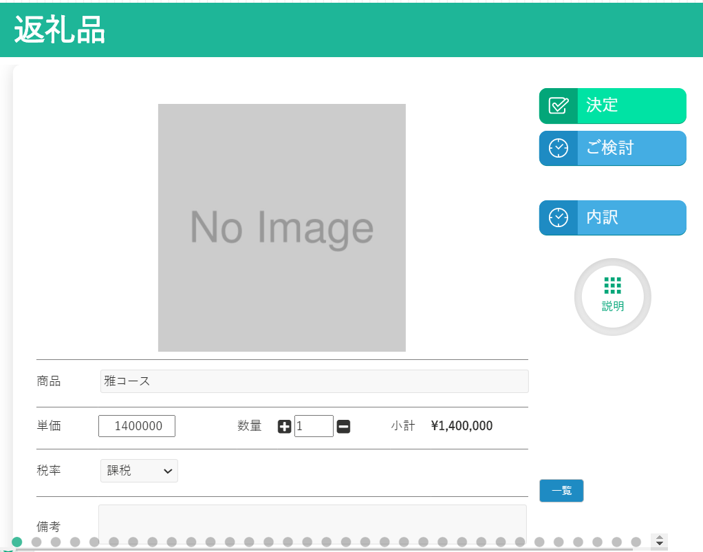 決定ボタン:商品を決定リストへ追加します(見積書へ反映されます)