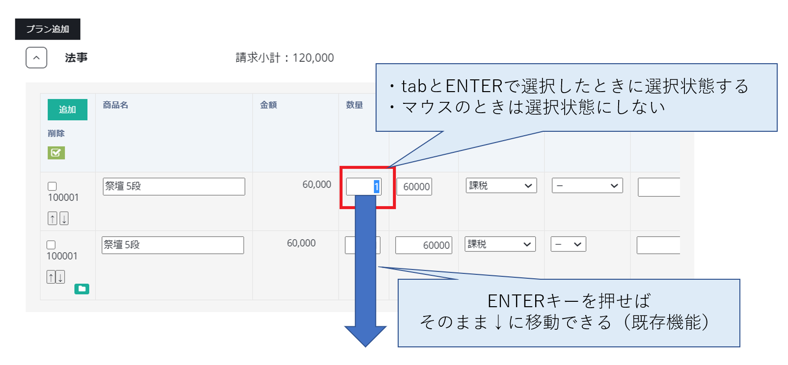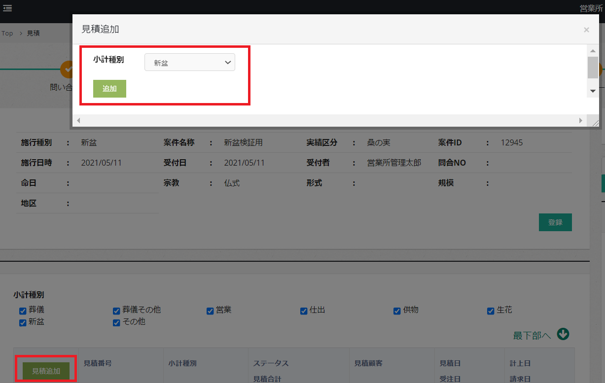 見積作成時に、小計タイプ:新盆を選択すると、新盆モードに切り替わります。
