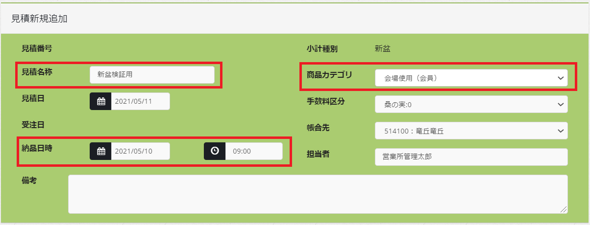 見積新規追加時画面