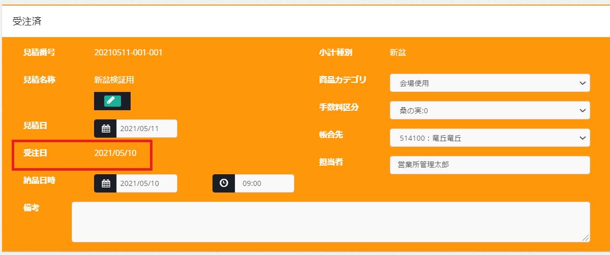 見積受注後画面