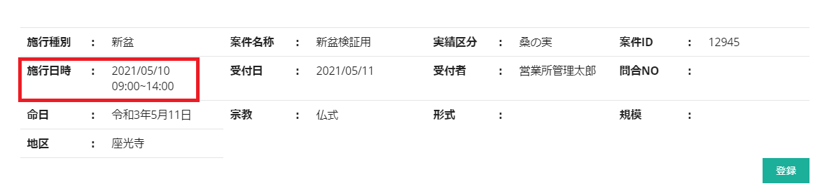 施行種別を新盆にした場合には施行日入力が必須となります。