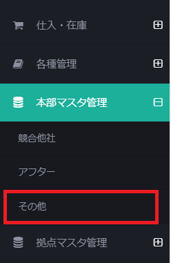 本部マスタ管理の下にリンクがあります。ログインしたユーザに権限が付与されている場合のみ表示されます。