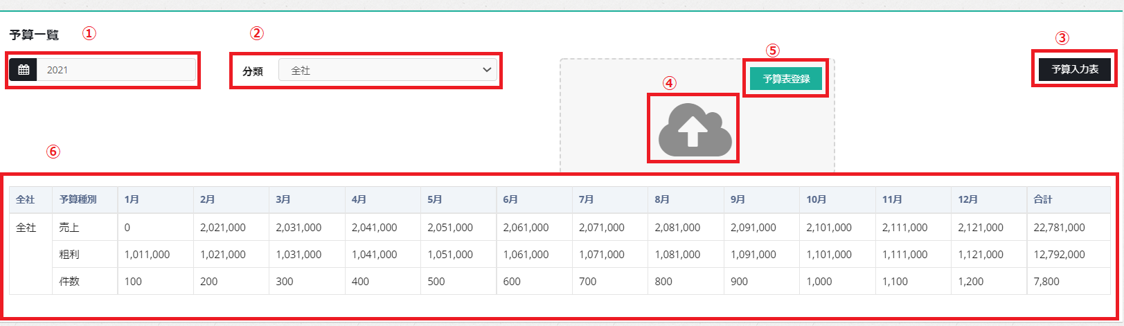 経営ダッシュボードのグラフは、一日一回夜間に最新の状態へ更新されます。よって、当画面で予算入力しても即時にグラフへ反映はされません。