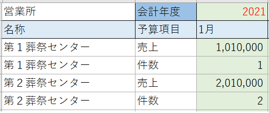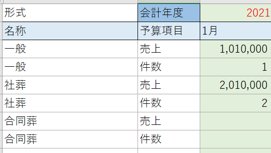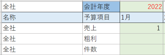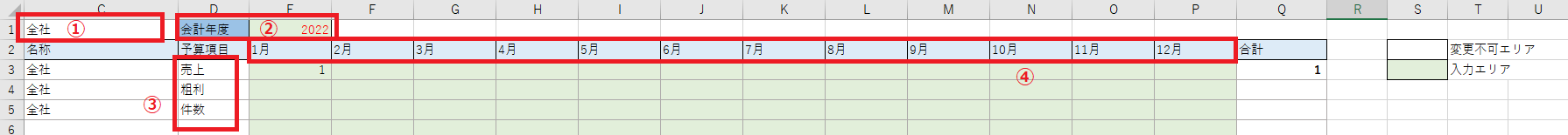 サンプルでは1月はじまりですが、期首マスタから取得した月を先頭に表示します。ここは編集しないでください