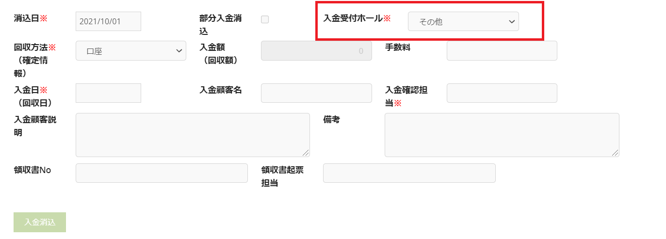入金受付ホールには、お客様が入金をされたホールを指定してください。
