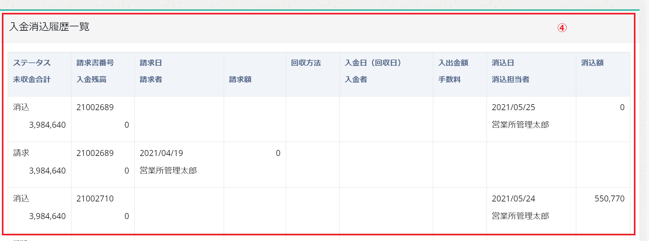 ※赤伝請求書、および赤伝発行元の請求書は、未消込請求一覧には表示されません