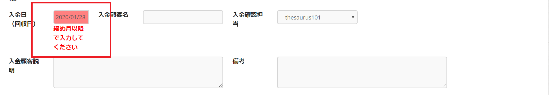 また、「入金日」は月締めのため、月締の締月以降でないと登録できません。
